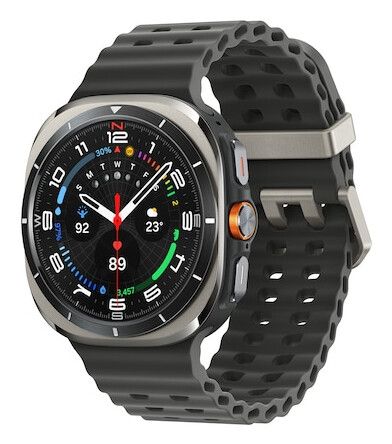 Samsung Galaxy Watch Ultra. Dimensioni diagonale schermo: 3,81 cm (1.5"), Tecnologia display: AMOLED, Risoluzione del display: 480 x 480 Pixel, Touch screen. Capacità RAM: 2000 MB, Memoria flash: 64 GB. Wi-Fi. GPS (satellitare). Capacità della batteria: 590 mAh. Peso: 60,5 g. Colore cinturino: Grigio. Sistema operativo incluso: Wear OS